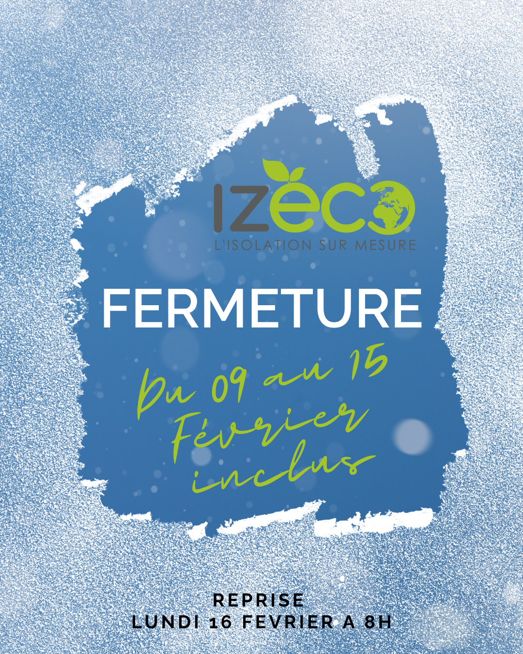 Information clients L’entreprise IZECO sera exceptionnellement fermée du 09 au 15 février inclus. Nous serons ravis de vous retrouver dès le 16 février pour vos projets. Merci de votre compréhension.