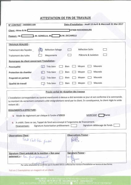devis gratuitement après nous être rendu sur place pour effectuer une visite technique dans le but d'évaluer les travaux à effectuer. Ils souhaitaient avoir un traitement des murs extérieurs, hydrofuge (imperméabilisant), coloré, résistant aux intempéries et aux pollutions. Nous avons pu réaliser le nettoyage et traitement hydrofuge de la façade car le crépi n'était pas abimé, il ne se décollait pas. Aucune infiltration d'eau n'a été détecté.