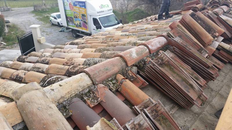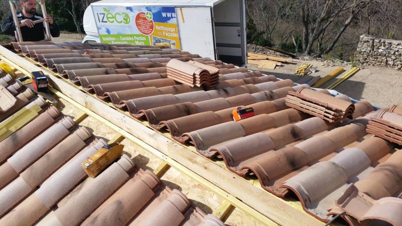 - dépose vieilles tuiles et pose tuiles en terre cuite neuves